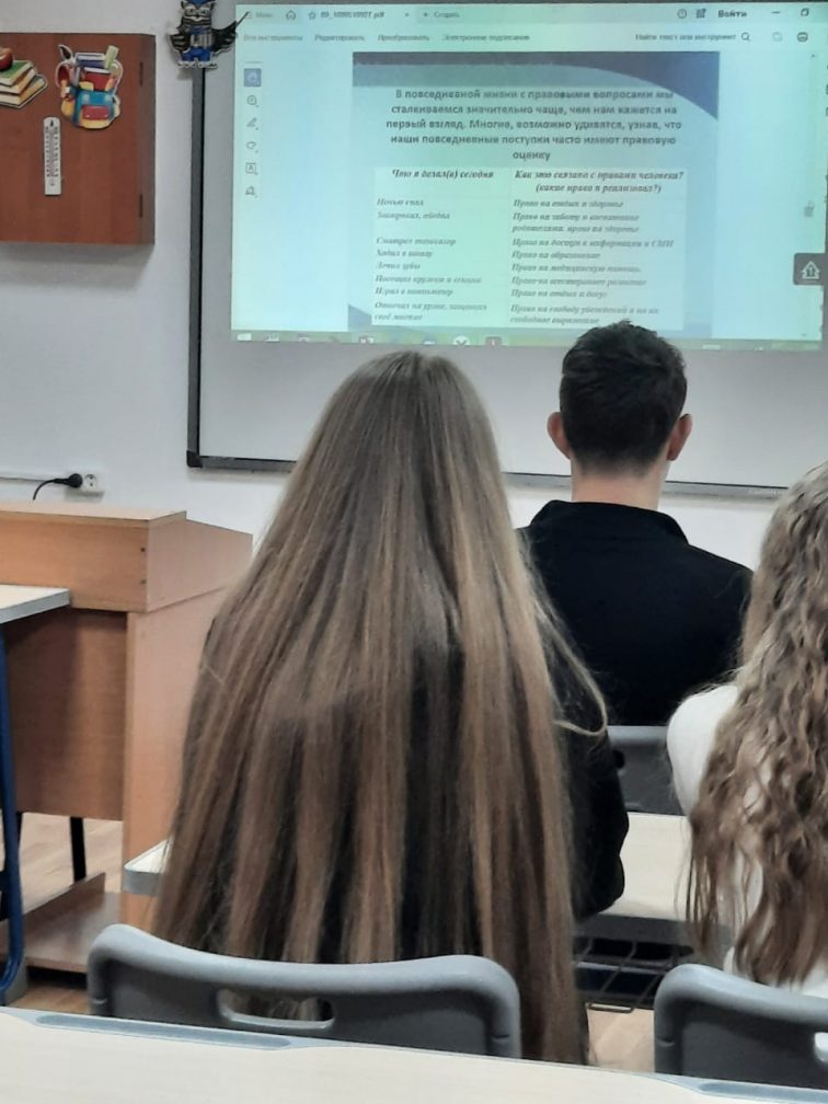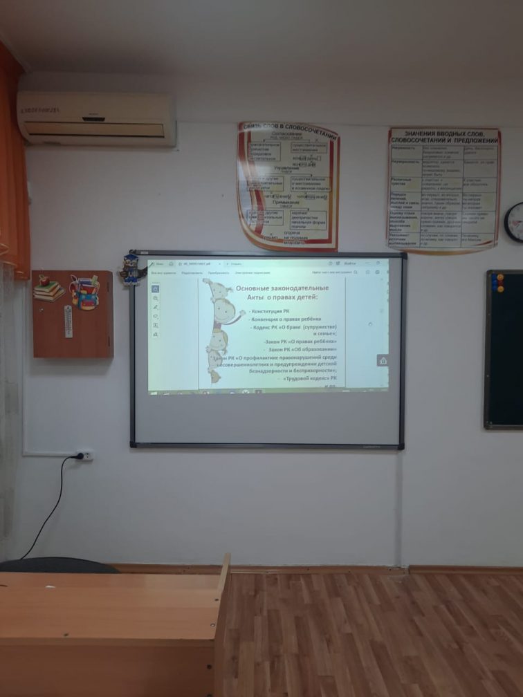 3 қараша күні 10 «Б» сыныбында «Заң және менің құқықтарым» тақырыбында бірыңғай интерактивті сабақ өтті. 10 «Б» сыныбының сынып жетекшісі - А.Е.Тулгабекова