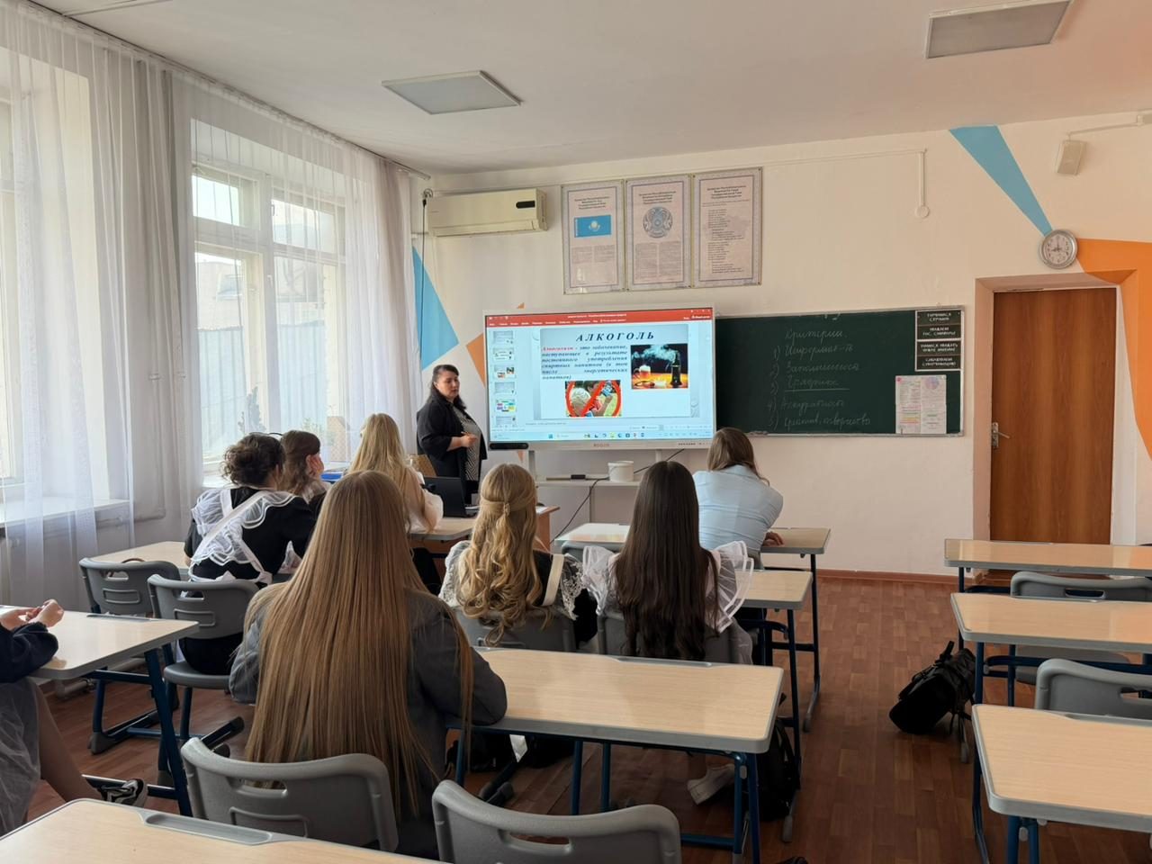 11 «Б» сыныбының сынып жетекшісі — Мельник Александра Анатольевна өткізді. Сынып сағаты барысында оқушылар есірткі және уытты заттарды қолданудың салдарын, олардың адам денсаулығына, психикасына және әлеуметтік өміріне теріс әсерін талқылады.