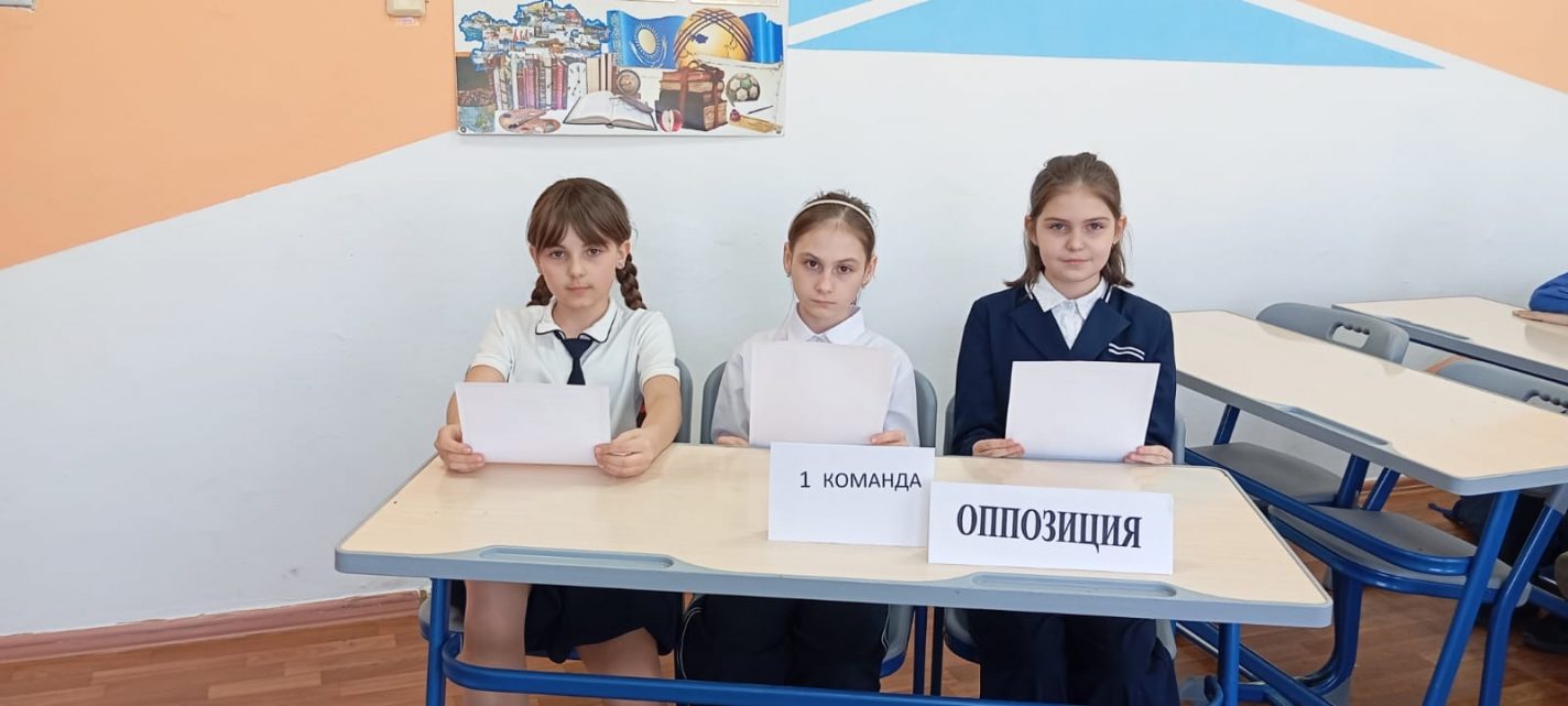 28.04.2026 жылы 5 « Б « сыныбында «Бұл палата үйірмелер мен спорт секциялары жасөспірімдер арасындағы құқық бұзушылықтардың алдын алуға көмектеседі деп санайды» тақырыбында пікірталас өткізілді. Пікірталасқа екі команда қатысты:
