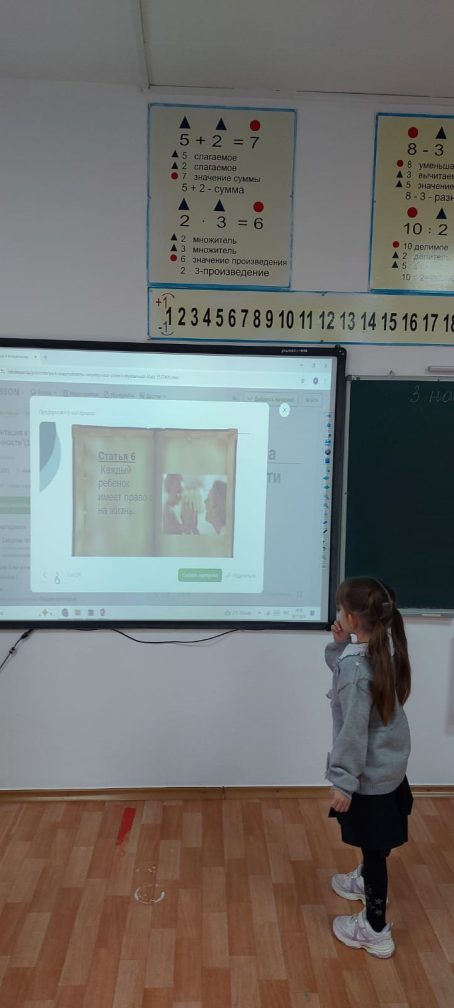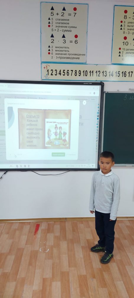 3 қараша күні 1«А» сыныбында «Заң және менің құқықтарым» тақырыбында бірыңғай интерактивті сабақ өтті. 1 «А» сыныбының сынып жетекшісі - А.А.Коняева