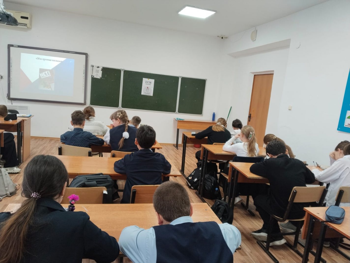 Акция аясында 8 желтоқсан күні 6 «А» сыныбында «Біззорлық-зомбылыққа қарсымыз» атты сынып сағаты өтті. Сабақ барысында оқушылар зорлық-зомбылық түрлерін талқылады, дауларды агрессия дана жыратуды үйренді, бейбіт қарым-қатынас жасаудың жолдарын және бір-біріне құрметпен қараудың маңызын түсінді. Сонымен қатар, қиын жағдайларда көмек сұраудың қажеттілігі және проблемамен жалғыз қалмаудың мәні ерекше ата пөтілді.