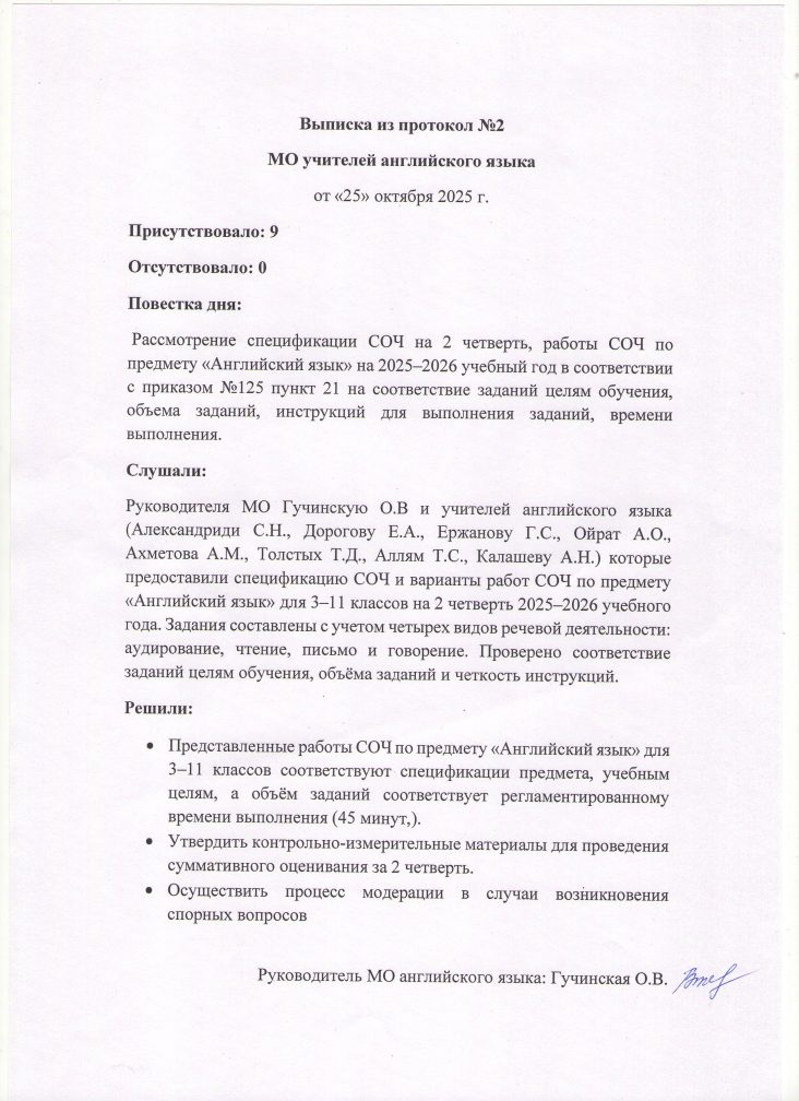 Ағылшын тілі мұғалімдерінің әдістемелік бірлестігінің 2025 жылғы қазандағы отырысы