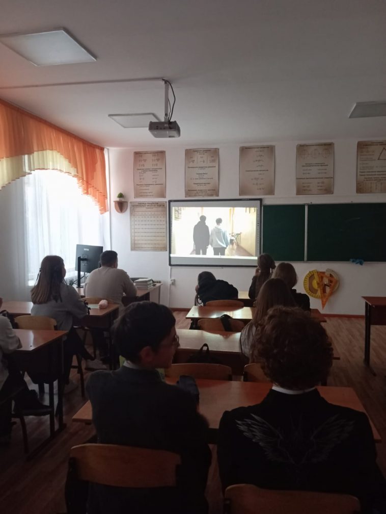 9 «Б» және 9 «Г» сыныптарының оқушылары «Лудомания», «Не становись дропом», «Адалдық пен әділдік» , «Дұрыс жолды таңда» , «Қоғамға пайдалы бол», «Бір шешім сенің немесе басқа біреудің өміріне шығын келтіруі мүмкін» тақырыбында бейнероликтерді қарады.
