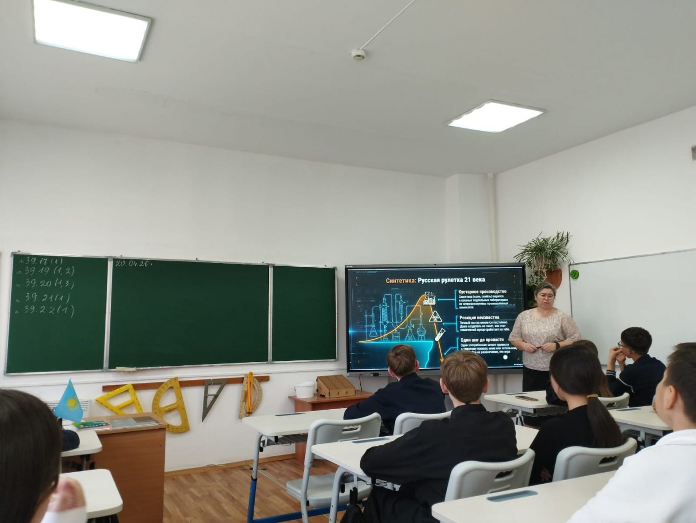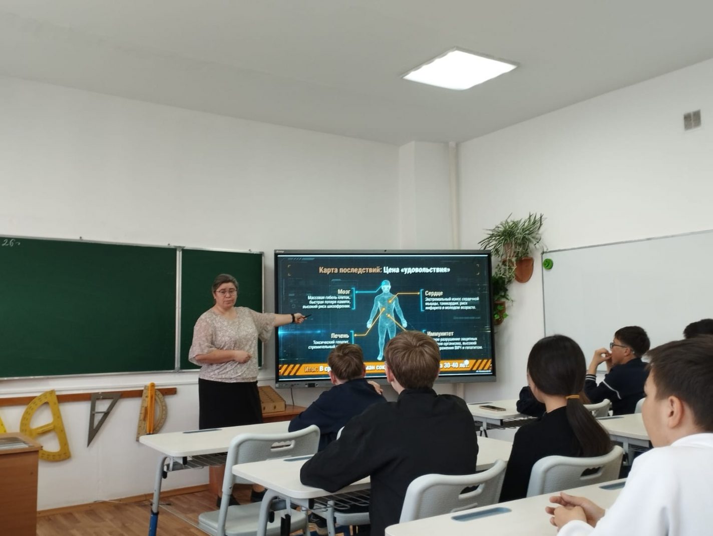 Өз денсаулығына саналы көзқарасты қалыптастыруға, жаман әдеттерден бас тарту дағдыларын дамытуға және жауапты шешімдер қабылдауға ерекше назар аударылды. Талқылау аясында «Химия сенің миыңды қалай бұзады» тақырыбы қозғалды, бұл оқушыларға тәуелділікті қалыптастыру механизмдерін жақсы түсінуге мүмкіндік берді.