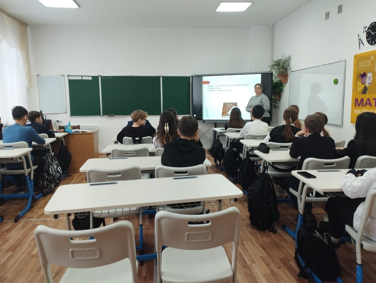 Сынып сағаты барысында оқушылар өздерінің құқықтары мен міндеттерін талқылады, заңнама нормаларын сақтауға байланысты өмірлік жағдайлар мысалдарын қарастырып, күнделікті өмірдегі құқықтық сауаттылықтың маңыздылығы туралы қорытындыға келді. Сабақ оқушылардың құқықтық санасын, жауапкершілігін және азаматтық ұстанымын дамытуға ықпал етті.
