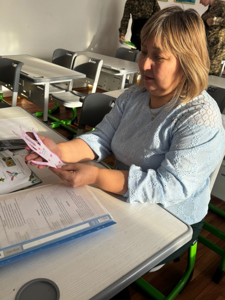 Жоғары сынып оқушылары достық пен қолдаудың белгі сіретінде түрлі-түсті қағаздан қиып жасалған алақандар дайындап, оларға ұстаздарына арналған жылы тілектерін, алғыс сөздерін және ізгіниет терін жазды. Оқушылар бұлалақан дарды ұстаздарға өзқолымен табыстап, шынайылық, құрмет және ризашылыққа толы жағымды көңіл күй қалып тастырды.