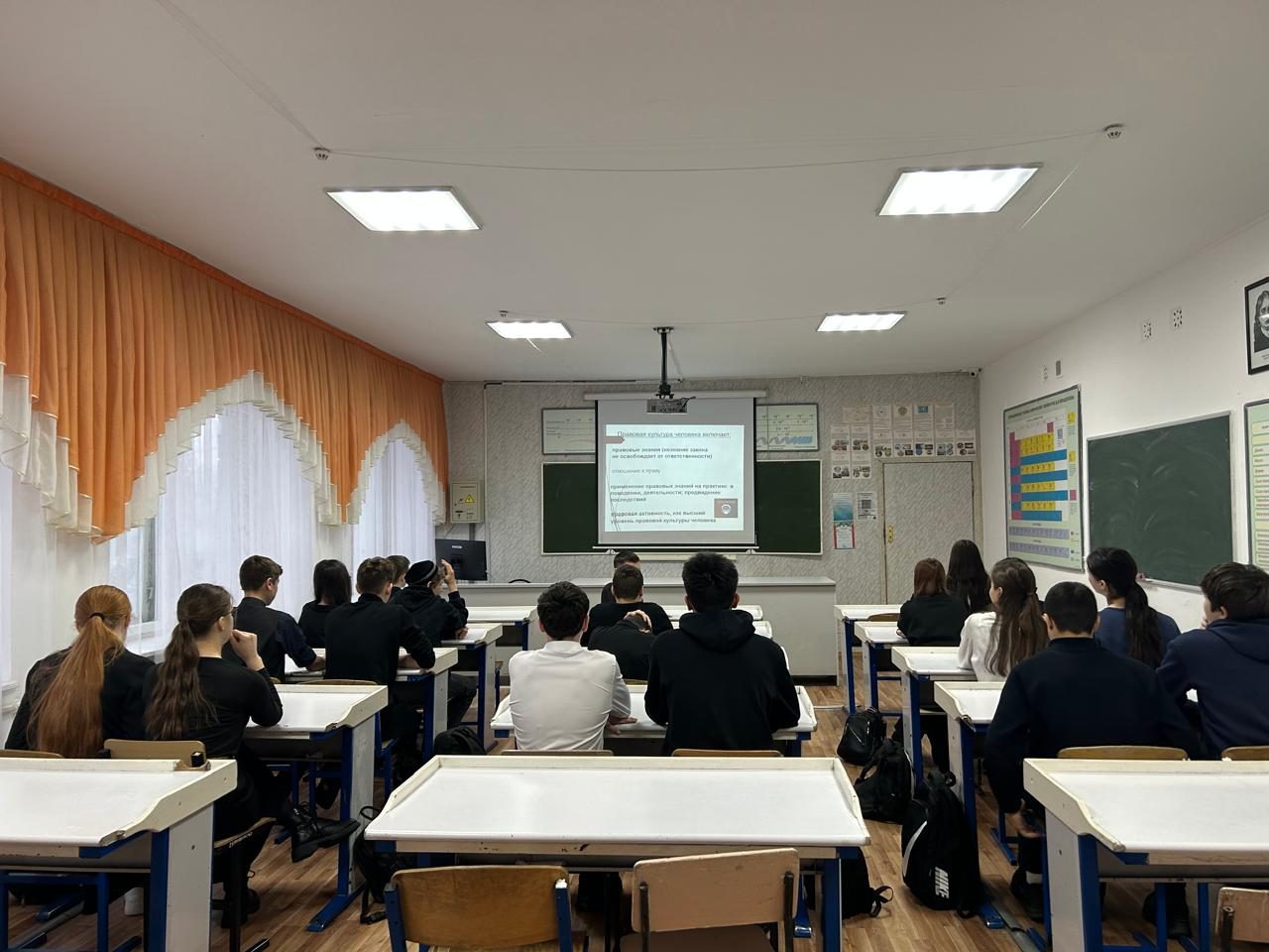 Сынып сағаты барысында оқушылар заңдардың сақталуына байланысты күнделікті өмірдегі мысалдарды талқылады, құқық бұзушылықтың салдары мен басқа адамдардың құқықтарын құрметтеудің маңыздылығы туралы білді. Іс-шара құқықтық сана мен өз әрекеттері үшін жауапкершілікті қалыптастыруға ықпал етті.