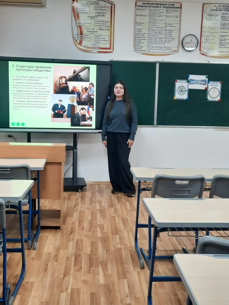 Сынып сағаты барысында балалар азаматтардың негізгі құқықтары мен міндеттерін, заңды және заңсыз мінез-құлық үлгілерін, сондай-ақ күнделікті өмірдегі құқықтық мәдениеттің маңыздылығын талқылады. Оқушылар заңдарды білу және оларды құрметтеу саналы және жауапты азаматты тәрбиелеудің маңызды бөлігі деген қорытындыға келді.