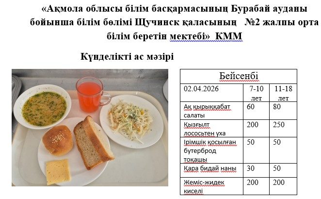 «Ақмола облысы білім басқармасының Бурабай ауданы бойынша білім бөлімі Щучинск қаласының №2 жалпы орта білім беретін мектебі» коммуналдық мемлекеттік мекемесі