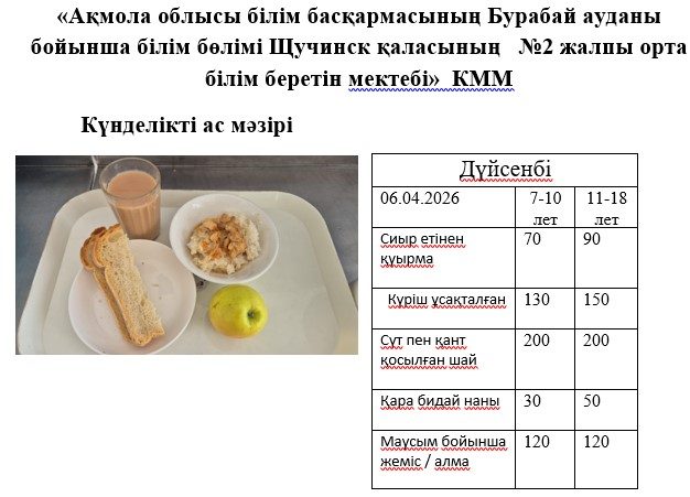«Ақмола облысы білім басқармасының Бурабай ауданы бойынша білім бөлімі Щучинск қаласының №2 жалпы орта білім беретін мектебі» коммуналдық мемлекеттік мекемесі