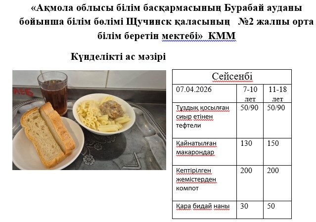 «Ақмола облысы білім басқармасының Бурабай ауданы бойынша білім бөлімі Щучинск қаласының №2 жалпы орта білім беретін мектебі» коммуналдық мемлекеттік мекемесі