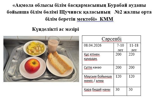 «Ақмола облысы білім басқармасының Бурабай ауданы бойынша білім бөлімі Щучинск қаласының №2 жалпы орта білім беретін мектебі» коммуналдық мемлекеттік мекемесі