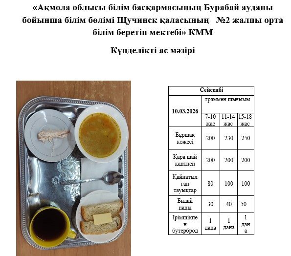 «Ақмола облысы білім басқармасының Бурабай ауданы бойынша білім бөлімі Щучинск қаласының №2 жалпы орта білім беретін мектебі» коммуналдық мемлекеттік мекемесі