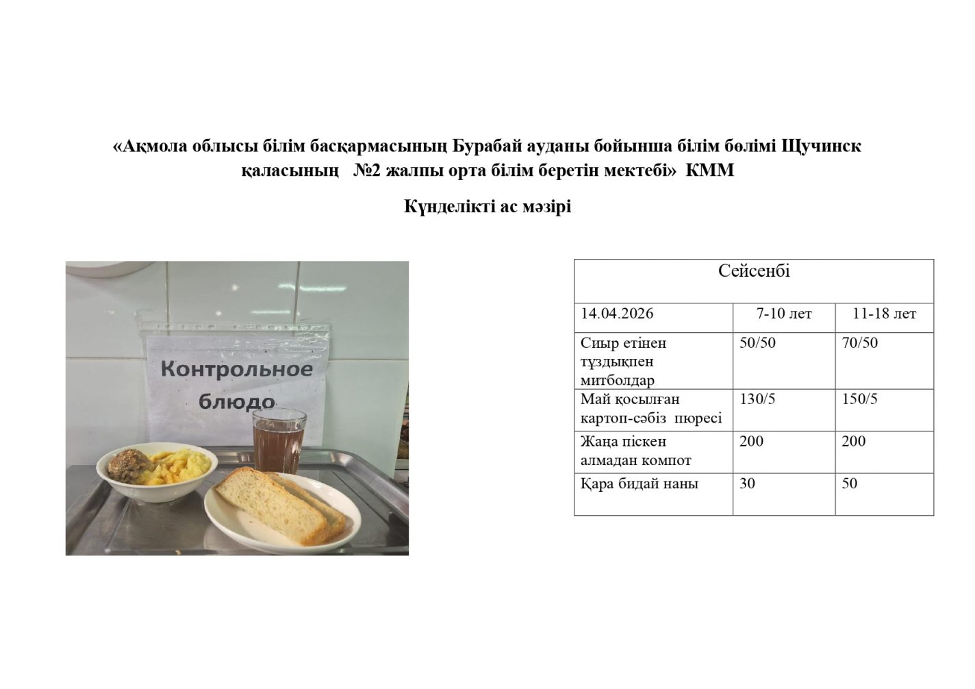 «Ақмола облысы білім басқармасының Бурабай ауданы бойынша білім бөлімі Щучинск қаласының №2 жалпы орта білім беретін мектебі» коммуналдық мемлекеттік мекемесі