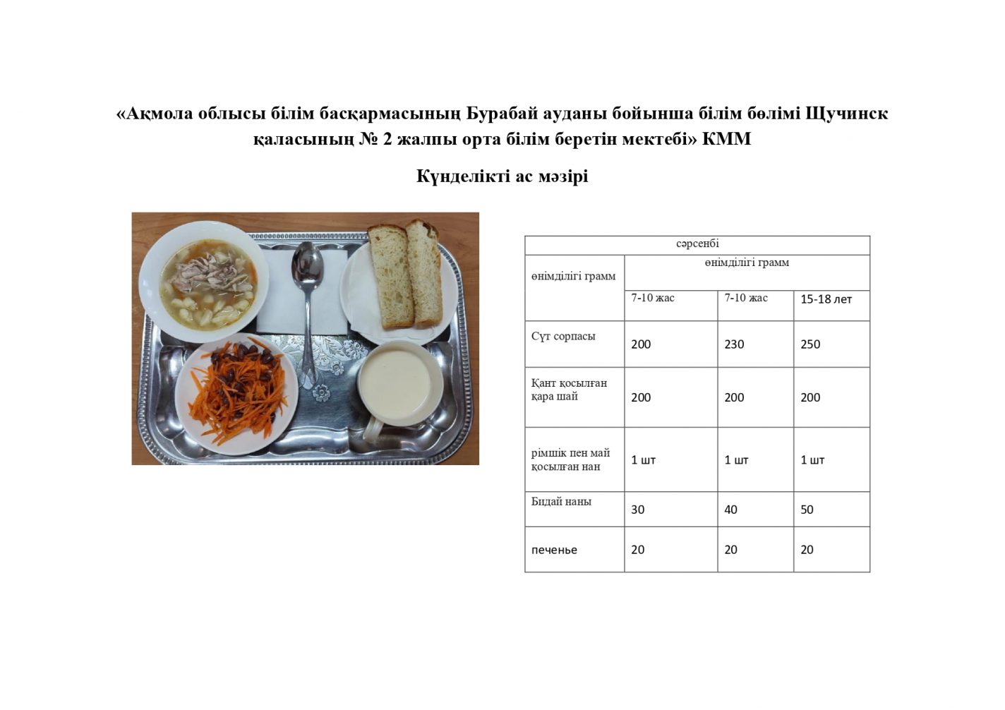 «Ақмола облысы білім басқармасының Бурабай ауданы бойынша білім бөлімі Щучинск қаласының №2 жалпы орта білім беретін мектебі» коммуналдық мемлекеттік мекемесі