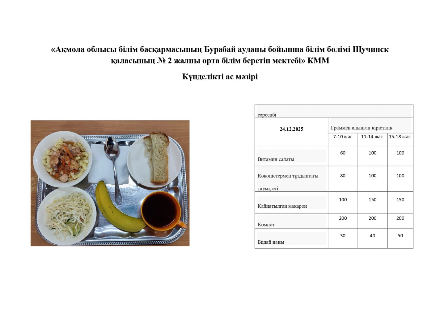 24.12.2025 жарналған күнделікті мәзір