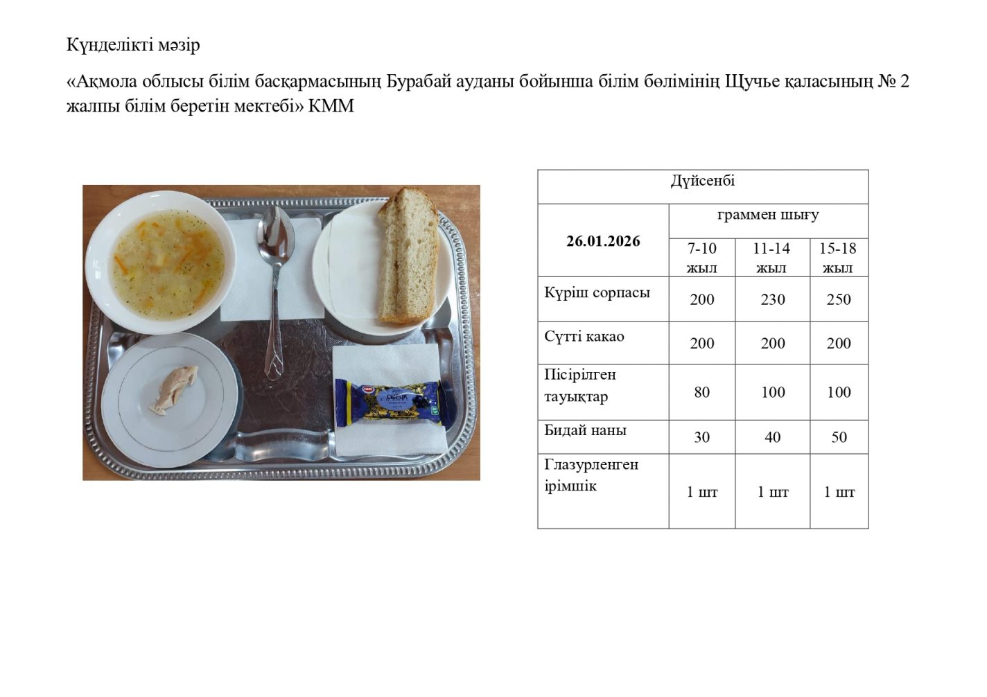26.01.2026 жарналған күнделікті мәзір