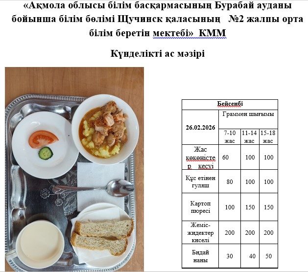 26.06.2026 жарналған күнделікті мәзір