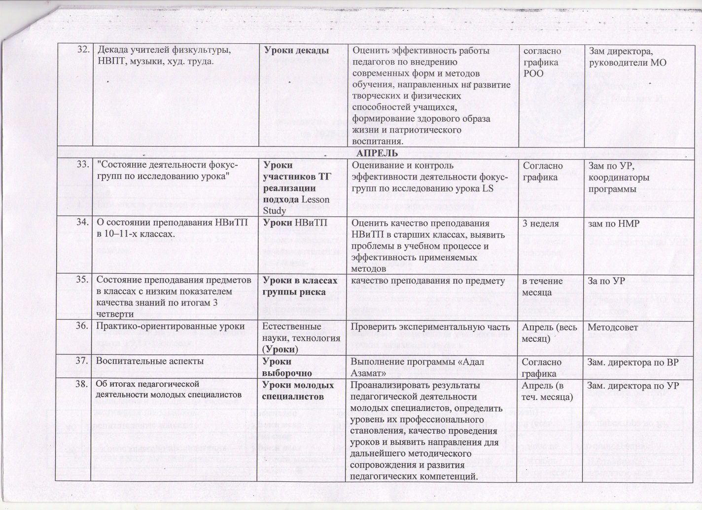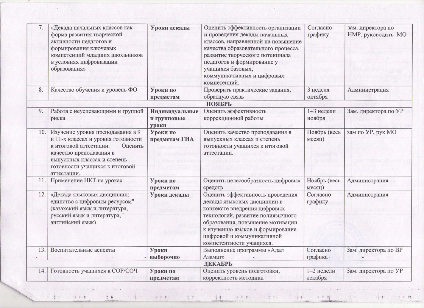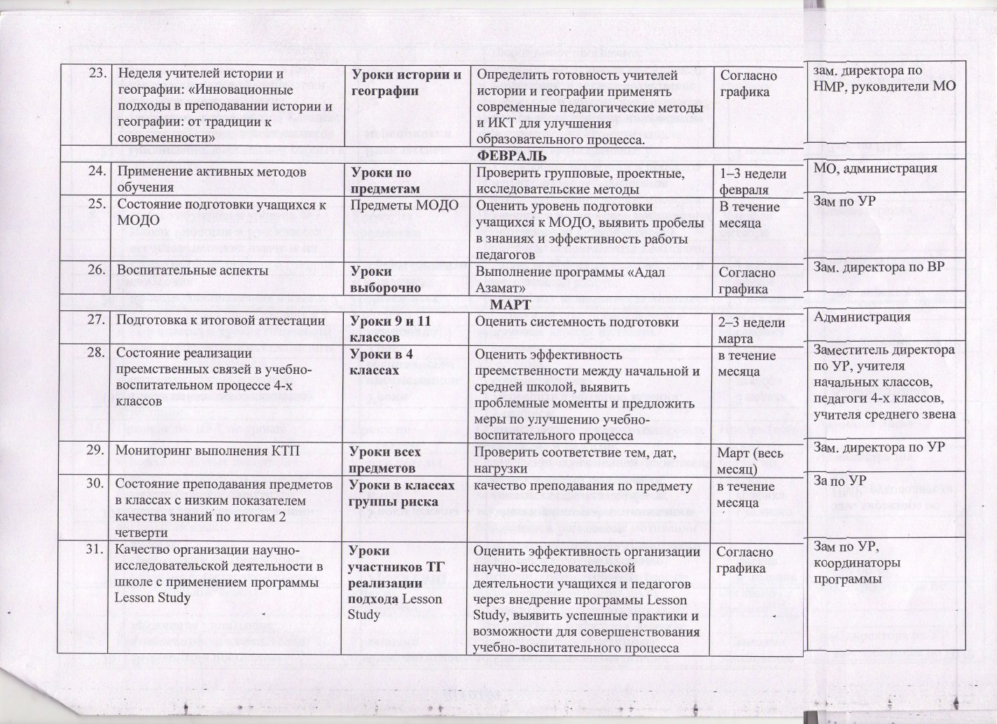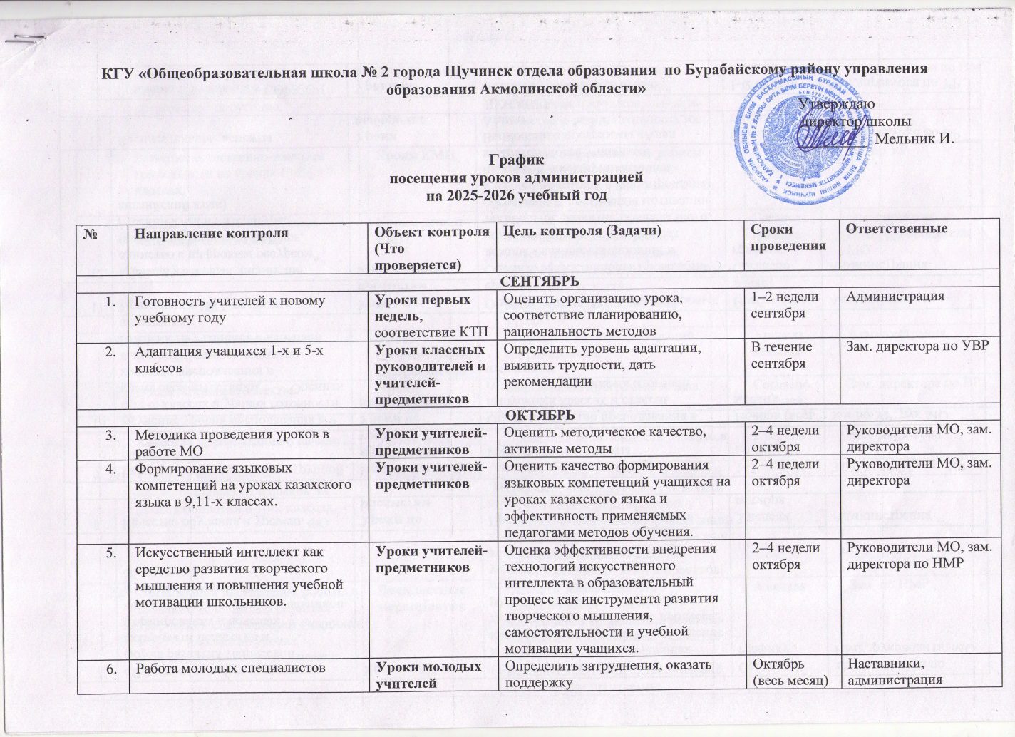 Әкімшіліктің 2025-2026 оқу жылына арналған сабақтарға қатысу кестесі
