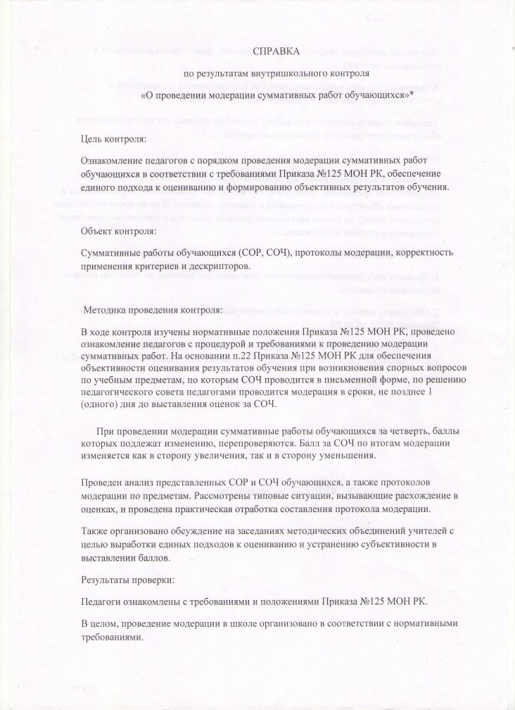 Білім алушылардың жиынтық жұмыстарына модерация жүргізу туралы