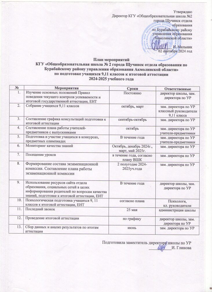 «Ақмола облысы білім басқармасының Бурабай ауданы бойынша білім бөлімі Щучинск қаласының №2 жалпы орта білім беретін мектебі» коммуналдық мемлекеттік мекемесі
