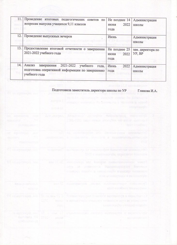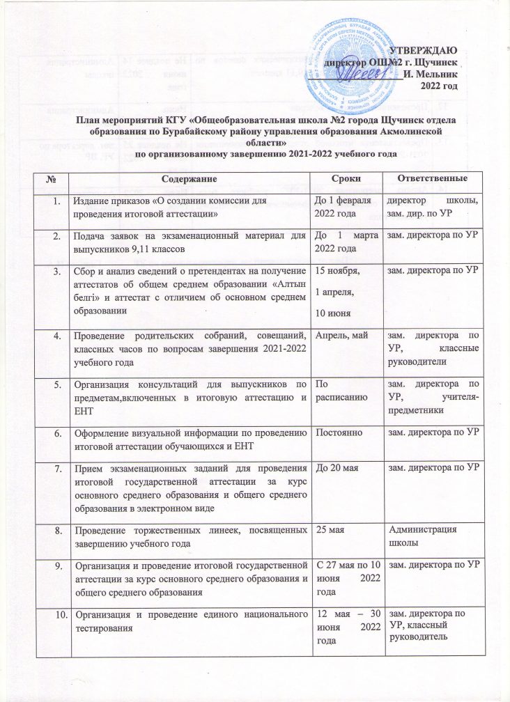 Ұйымдастырылған аяқтау жөніндегі 2021-2022 жылдарға арналған іс-шаралар жоспары