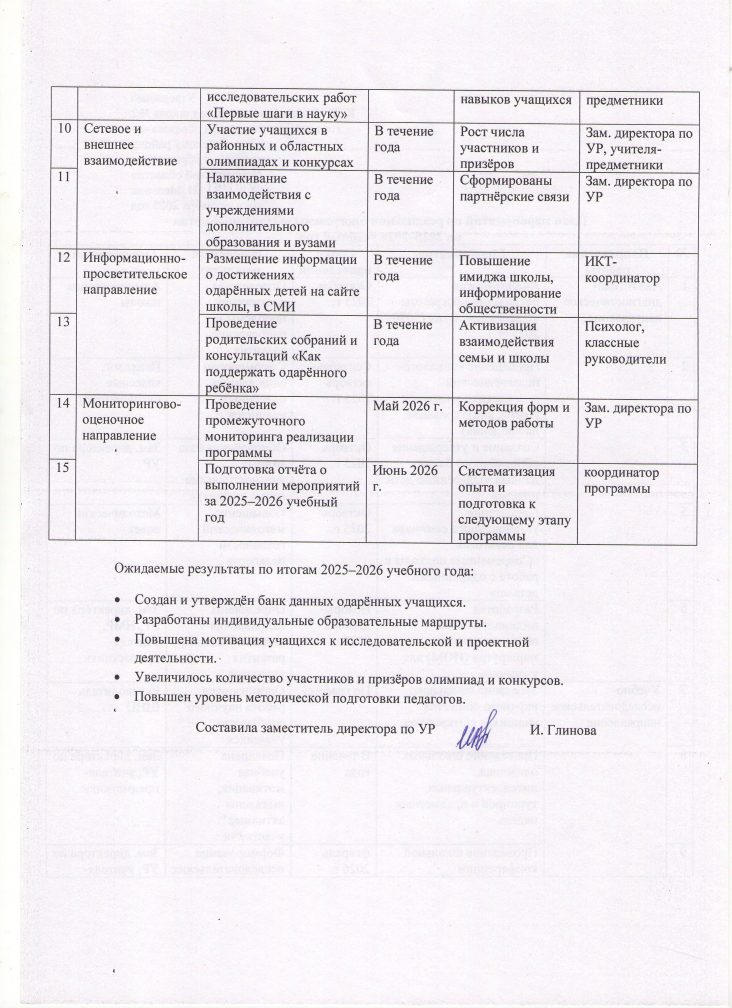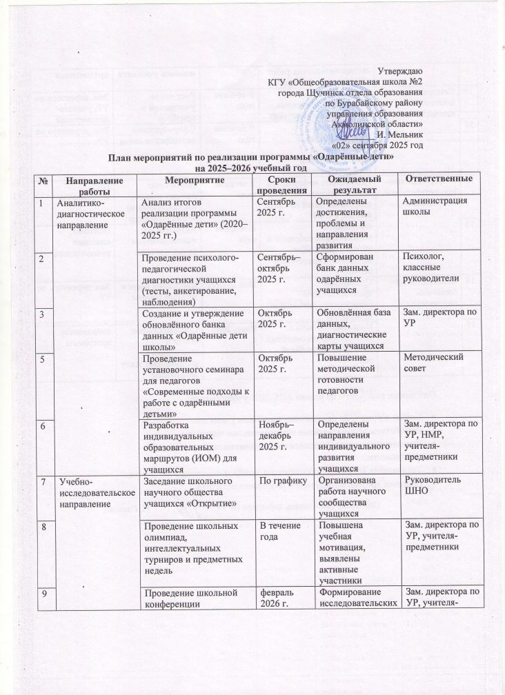 «Дарынды балалар» бағдарламасын іске асыру жөніндегі іс-шаралар жоспары