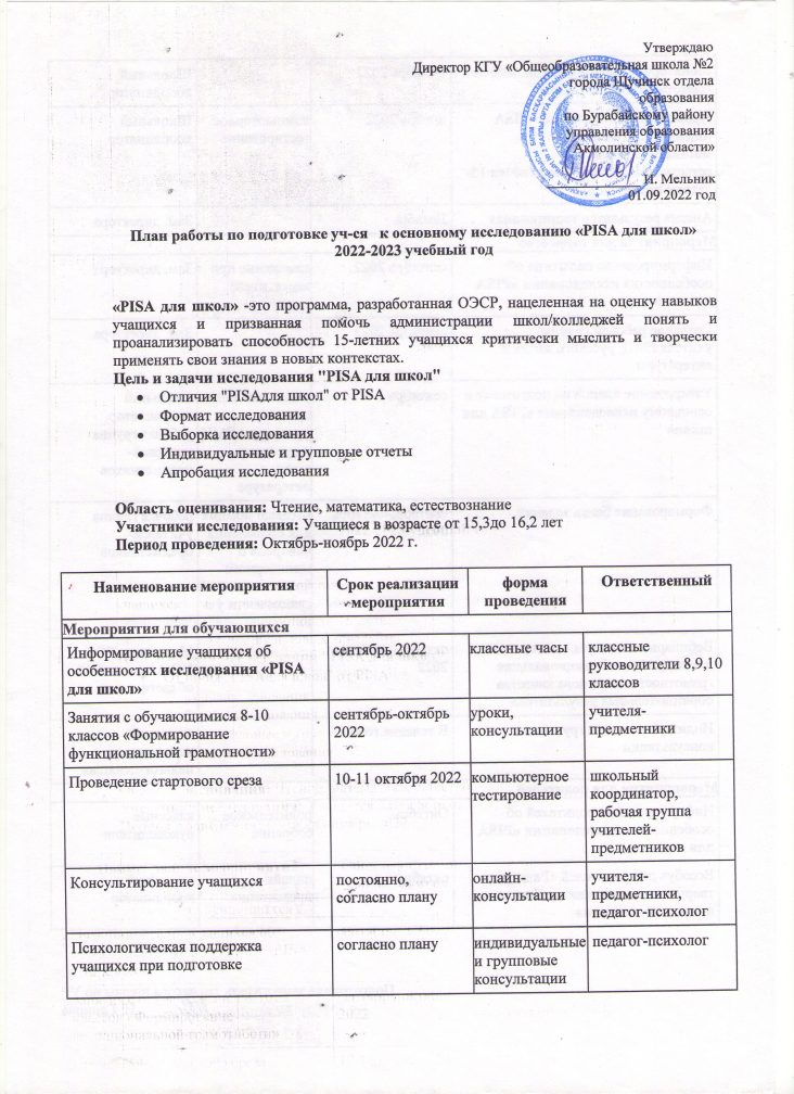 PISA-ның 2022-2023 жылдарға арналған жұмыс жоспары