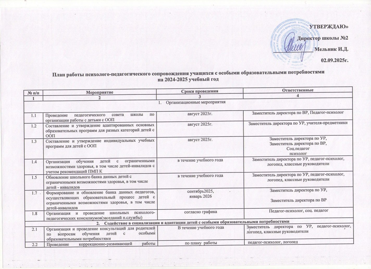 Ерекше білім беру қажеттіліктері бар оқушыларды психологиялық-педагогикалық сүйемелдеудің 2024-2025 оқу жылына арналған жұмыс жоспары