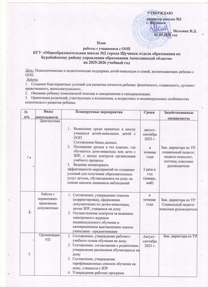 «№ 2 жалпы білім беретін мектеп» КММ КҚБ оқушыларымен жұмыс жоспары