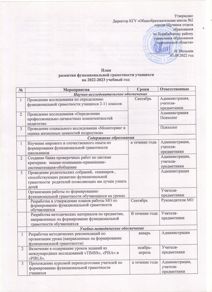 Функционалдық сауаттылықты дамытудың 2022-2023 жылдарға арналған жоспары