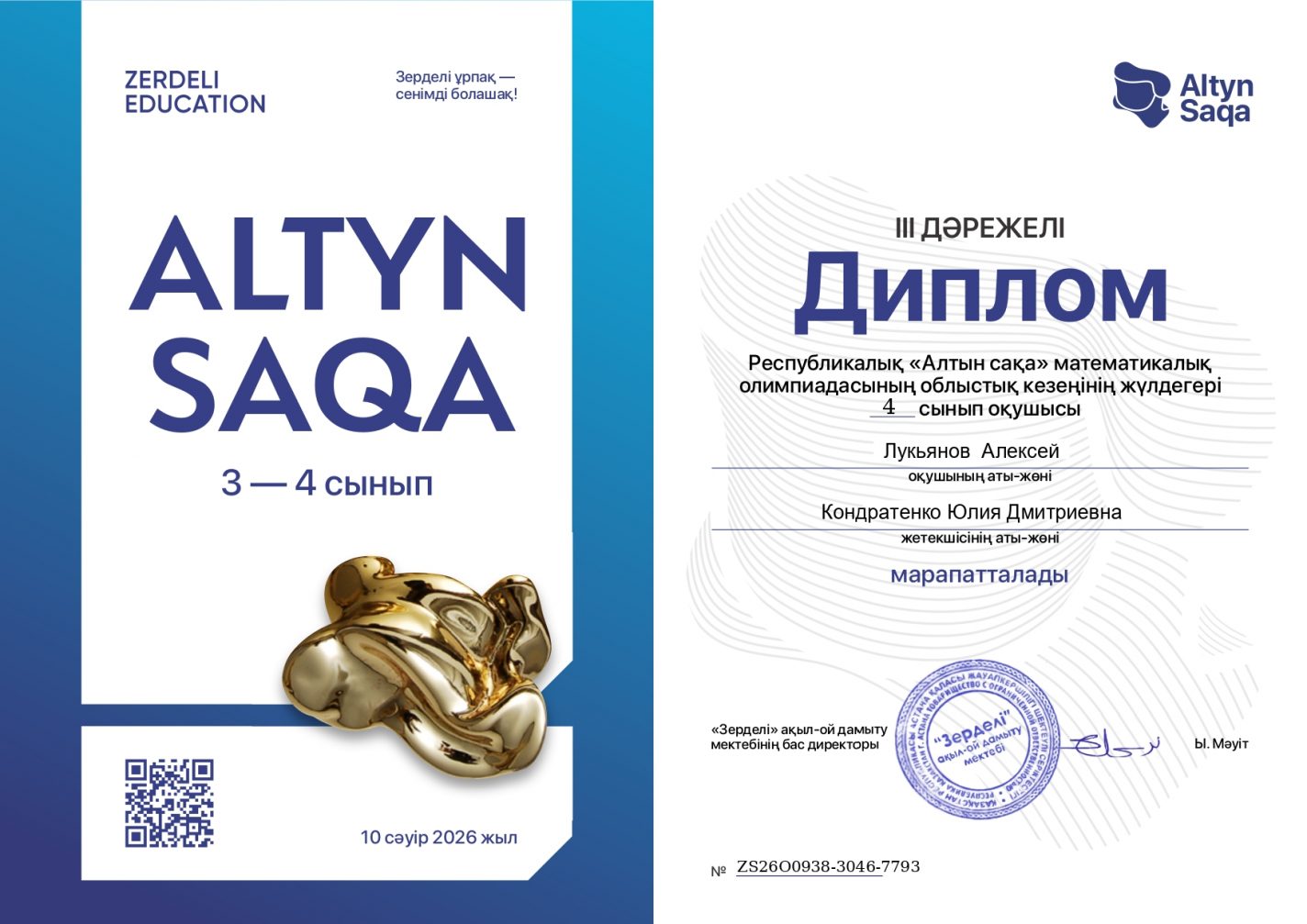 Алексей Лукьяновты 3-4 сынып оқушылары арасындағы «Алтын сақа» математикалық олимпиадасының облыстық кезеңіндегі құрметті 3-орнымен құттықтаймыз.