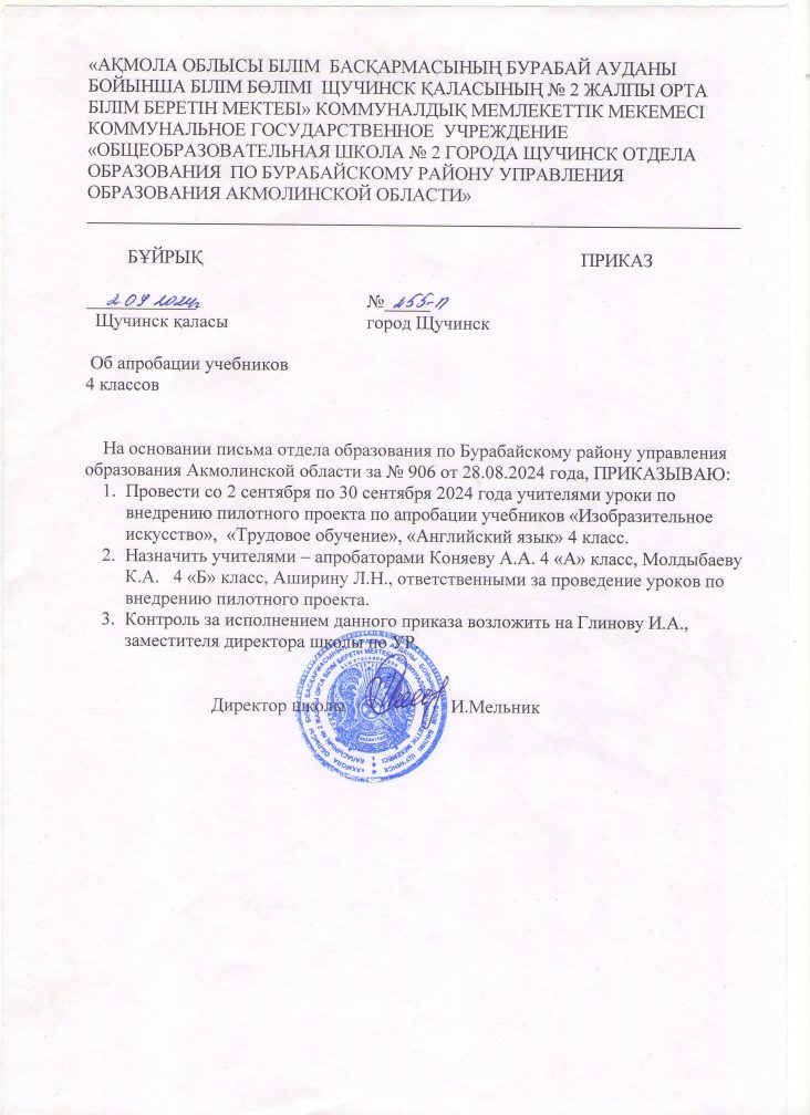 4-сынып оқулықтарын байқаудан өткізу туралы бұйрық