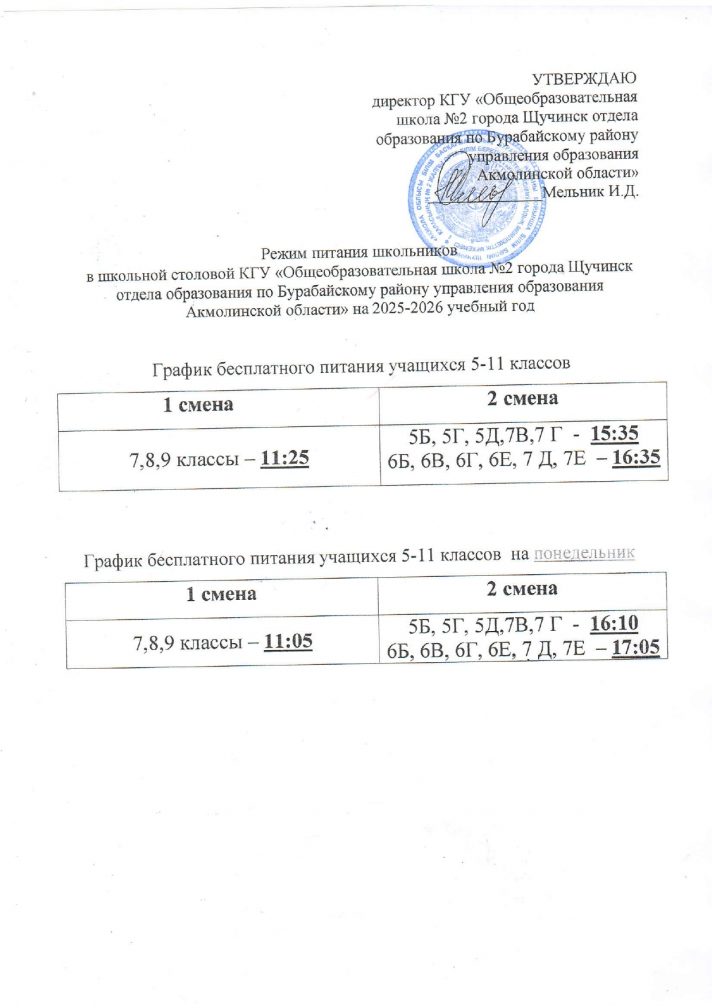Щучье қаласының No2 жалпы білім беретін мектебінің мектеп оқушыларының тамақтану жоспары