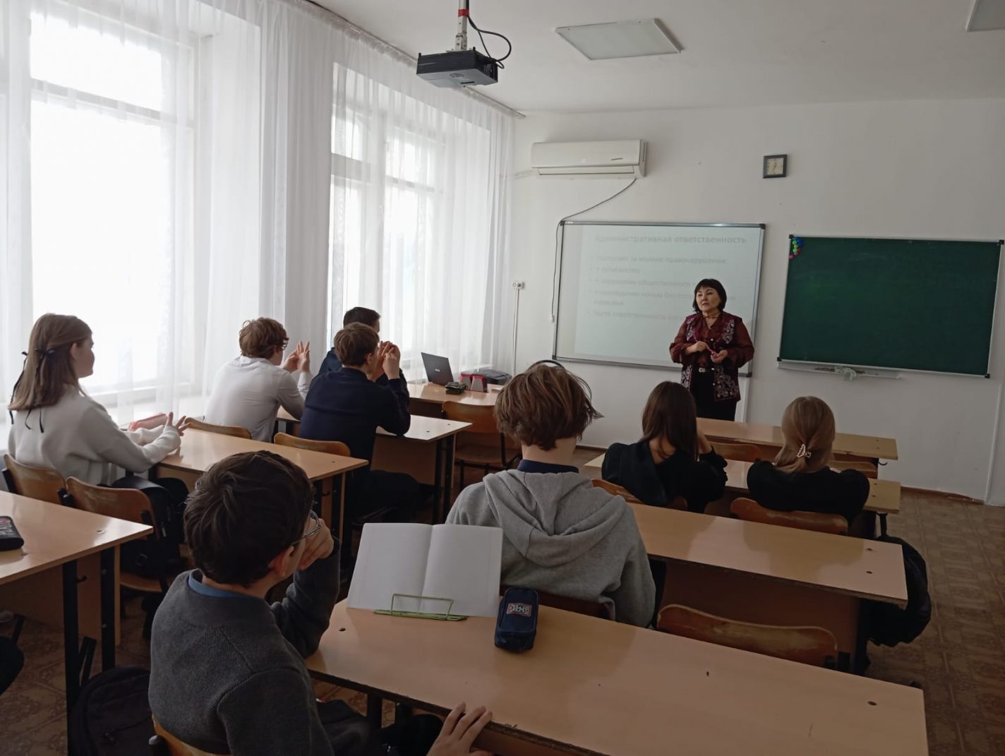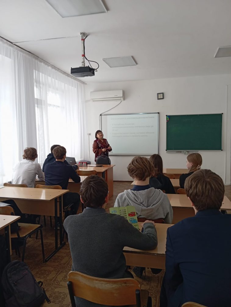 «Адал азамат» Бірыңғай тәрбие бағдарламасының «Заң және тәртіп» айлығы аясында 12 наурызда 9 «Б» сынып оқушыларымен «Құқық бұзушылықтың алдын алу -ортақ міндет» тақырыбында әңгімелесу өтті.