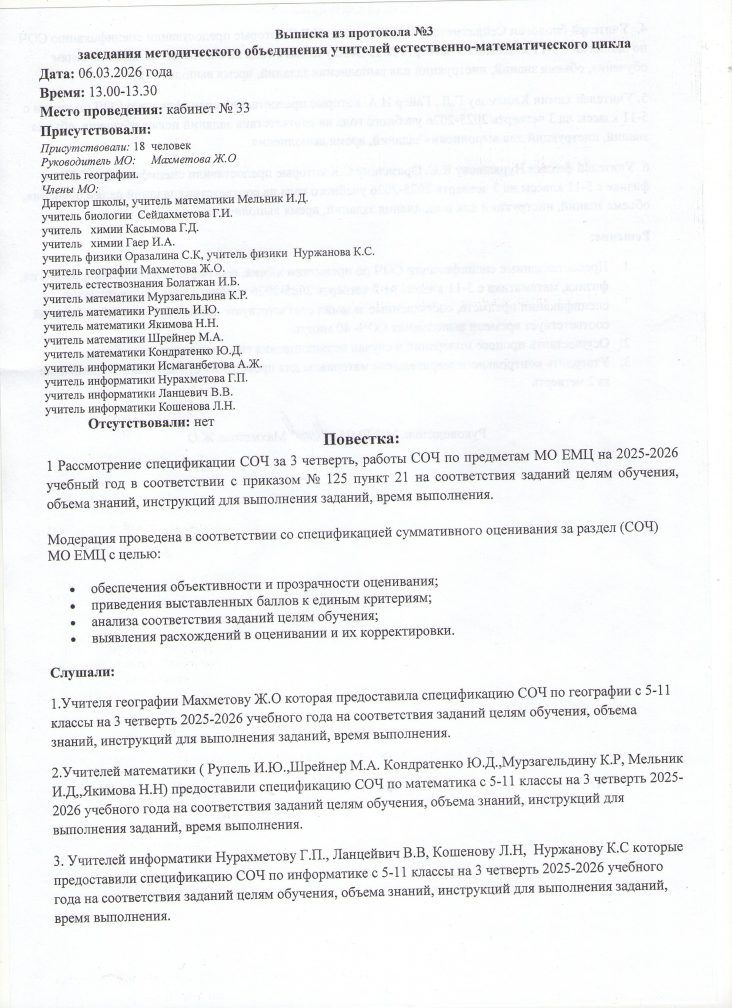 2026 жылғы наурызда жаратылыстану-математикалық цикл мұғалімдерінің әдістемелік бірлестігінің отырысы өтеді